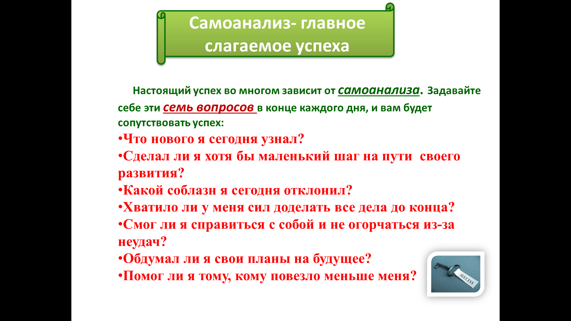Определите со своими учениками понятие успеха.