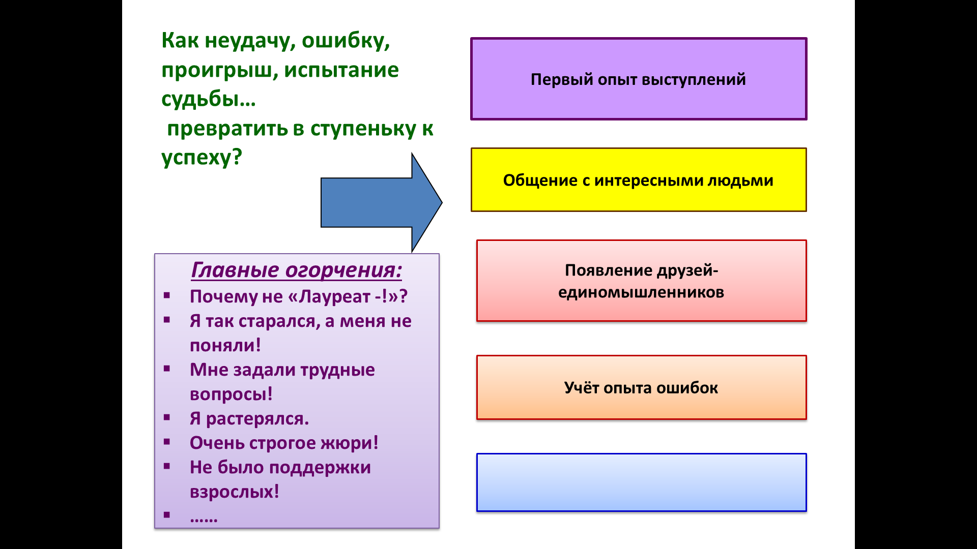 Задача учителя: неудачу, ошибку, проигрыш, испытание судьбы…