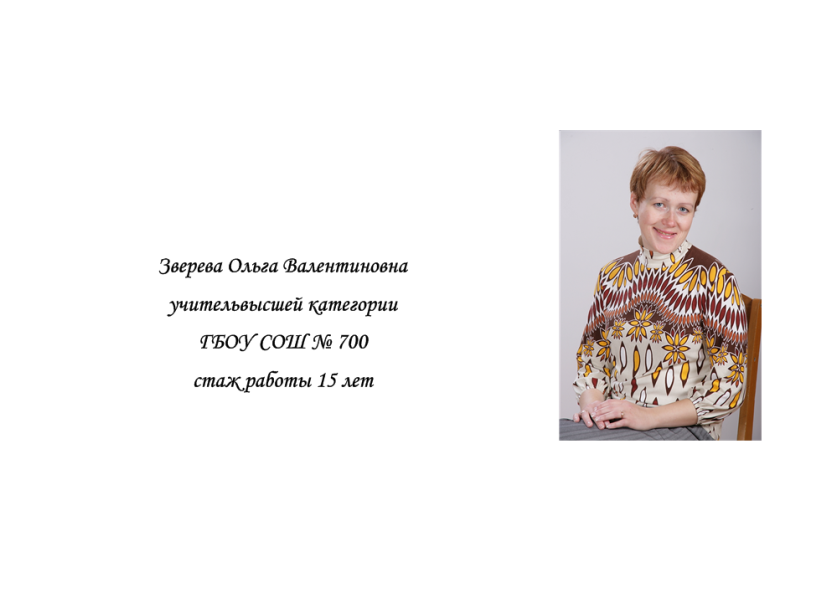 Учитель начальных классов ГБОУ № 700 Василеостровского района Санкт- Петербурга.