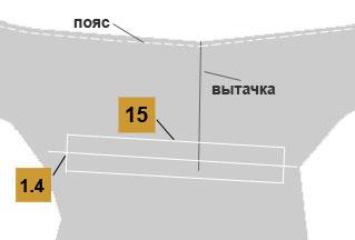 Чтобы определить точное положение этой линии, сделайте макет из картона и приложите к задней половинке брюк во время примерки. Подберите нужное положение и обведите контур кармана мелом. Таким простым способом, без лишних расчетов вы сможете точно определить, где и как должен располагаться прорезной карман.