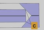 Пристрачивать их нужно точно по линии (С), от края до края высеченных уголочков. Это очень ответственная и важная операция, поэтому будьте предельно внимательными. Обязательно сметайте обтачки до уголков, не выступая за них, чтобы обе соединительные строчки были одинаковы по длине. Можно пометить мелом (перпендикулярными линиями) на обеих обтачках, где будет заканчиваться строчка.