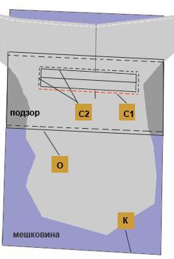 Подзор нужен для того, чтобы при открывании кармана не было видно подкладку кармана и одновременно укрепить мешковину.