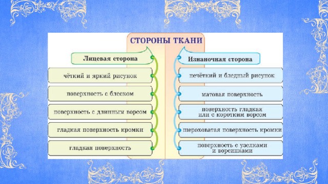 2. Найдите в каждом лоскуте ткани лицевую и изнаночную стороны.