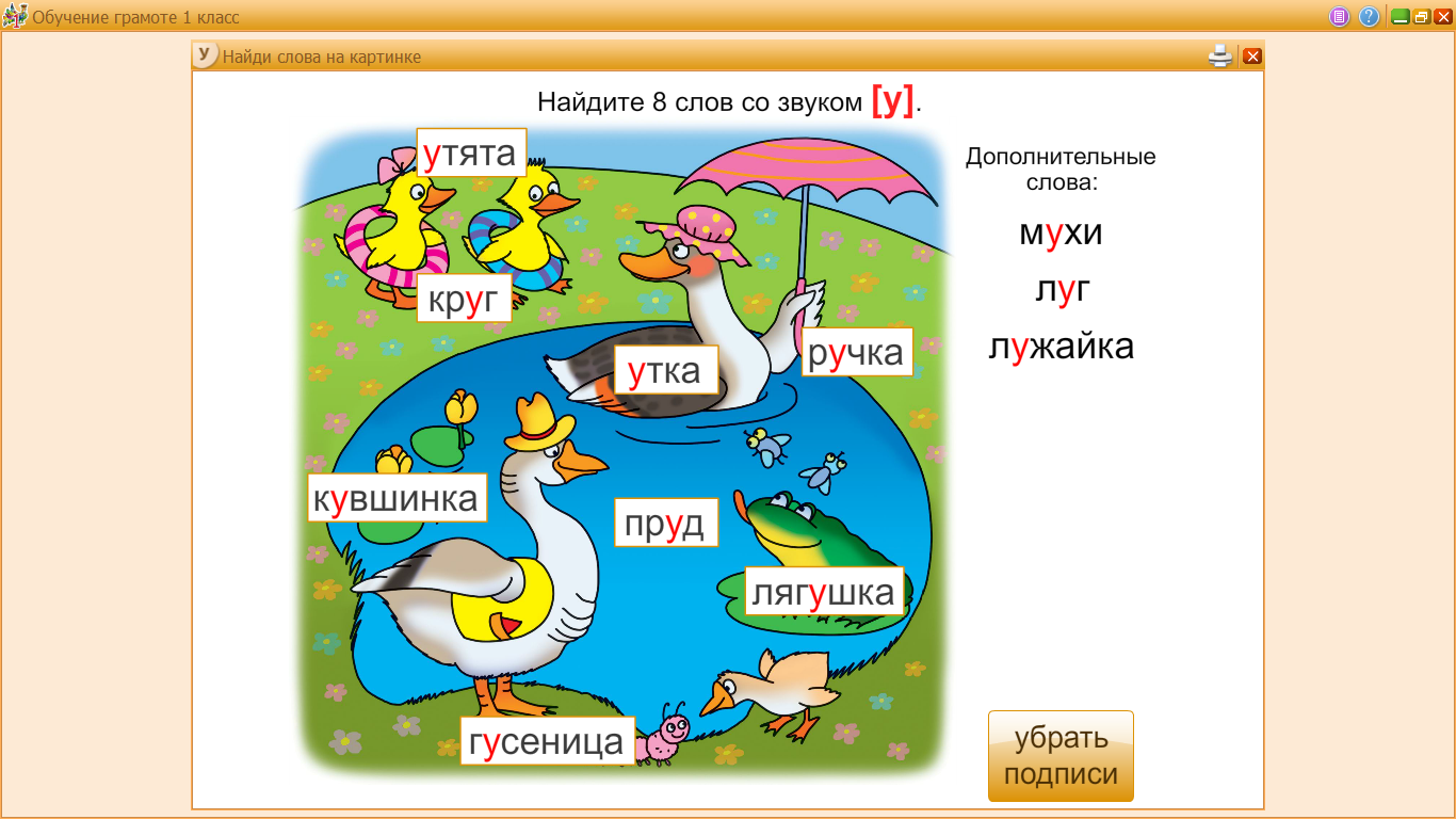 Находим слова на картинке с буквой У