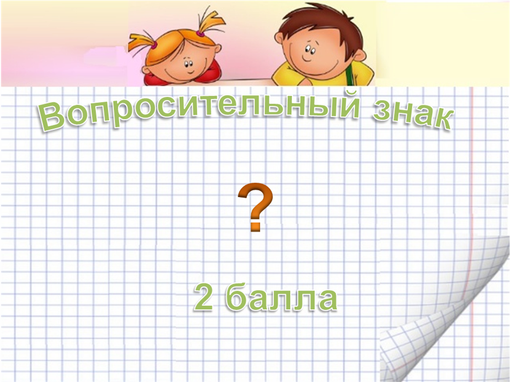 Вопросительный знак - Команде задается один вопрос, на который она должна ответить в течение 30-40 секунд. 2 балла за правильный ответ.