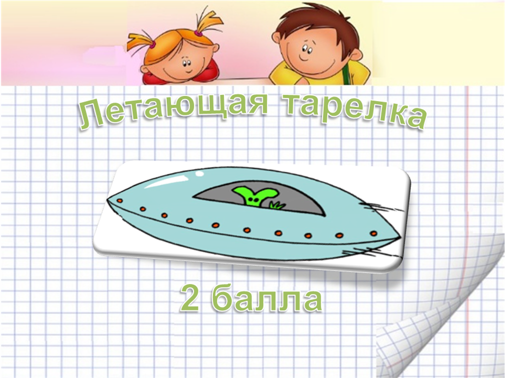 | Летающая тарелка | Команде дается творческое задание, которое она должна в ыполнить за 1-1,5 минуты. Выполняют обе команды. Только противная команда получает 1 балл. | 1 или 2 балла (в зависимости от качества выполнения). |
