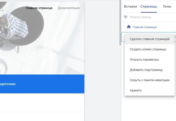 На вкладке «Страницы» вы можете управлять структурой своего сайта. Страницы можно дублировать, удалять, выбирать в качестве главной или скрывать из панели навигации.