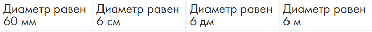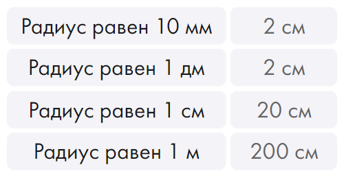 Установите соответствие между значением диаметра окружности и соответствующего ему значения радиуса окружности.