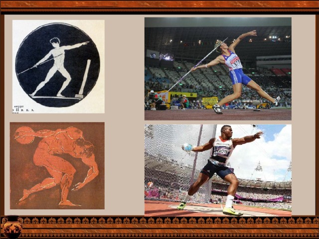 Рассмотрите рисунки соревнований на древнегреческих вазах и сопоставьте их с современные видами спорта