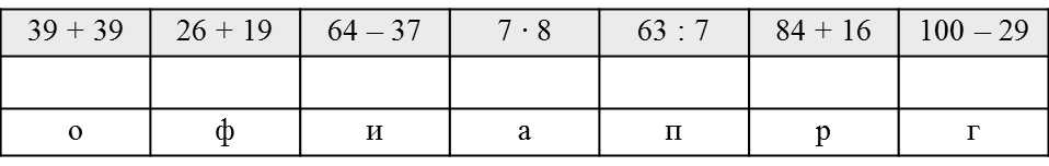 5. (3 балла) Под числовыми выражениями запиши их значения. Затем расположи полученные числа в порядке увеличения. Под ними напиши соответствующие этим числам буквы. Полученное известное имя запиши в ответе.