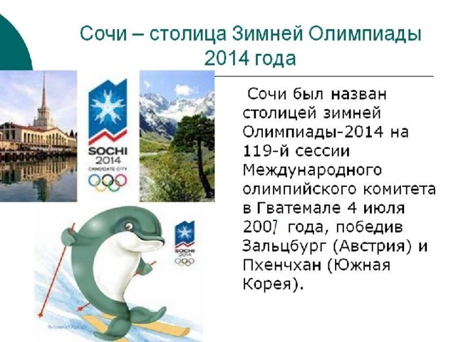 На территории России Олимпийские игры пройдут во второй раз (до этого в Москве в 1980 году прошли XXII летние Олимпийские игры), и впервые — зимние Игры.