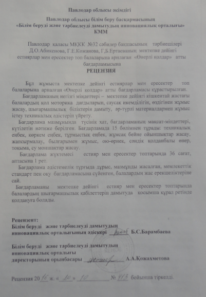 Бағдарлама «Өнерлі қолдар» вариативтік сабақ бағдарламасы