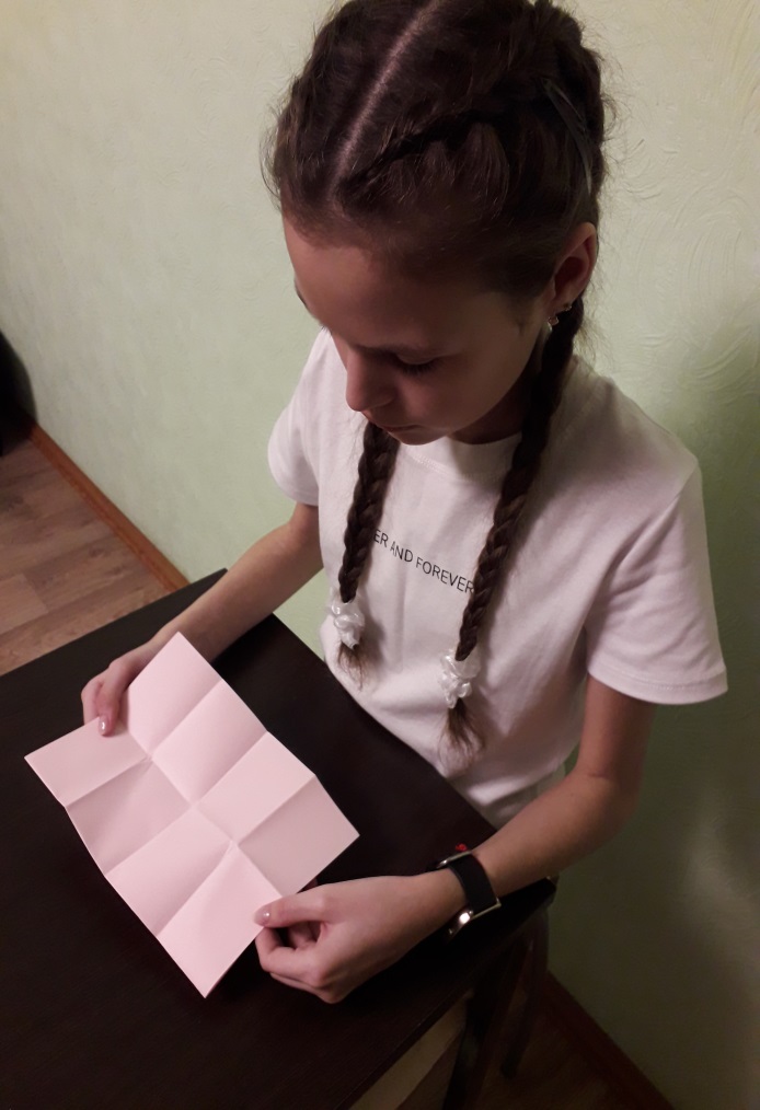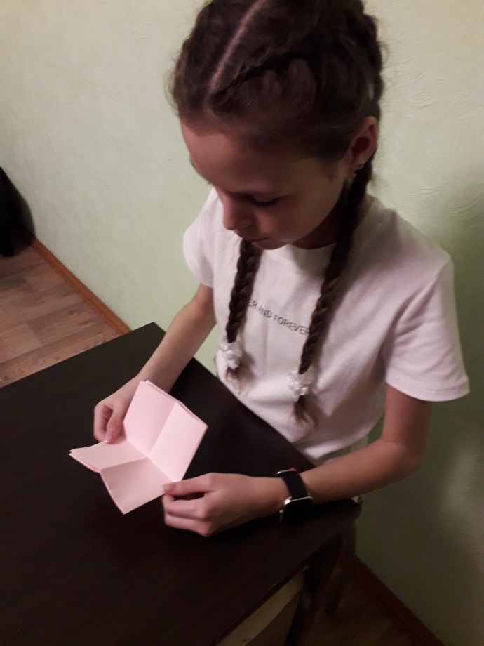 Сначала для меня это была просто игра, но со временем я осознала, складывая бумагу в определенной последовательности каждый может познакомиться с основными геометрическими понятиями. Такими как: угол( прямой, острый, тупой); прямая линия, сторона фигуры, вершины и многими другими.