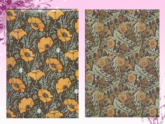- Меняясь в оттенках окраски, они всегда сохраняли в себе отголоски начальной фазы развития английского модерна, когда текстильный орнамент стал опираться на точные изображения местной флоры.
