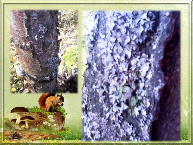 - Найдите лишайники. Рассмотрите их. Что вы знаете о необычности этого живого организма, о его строении?