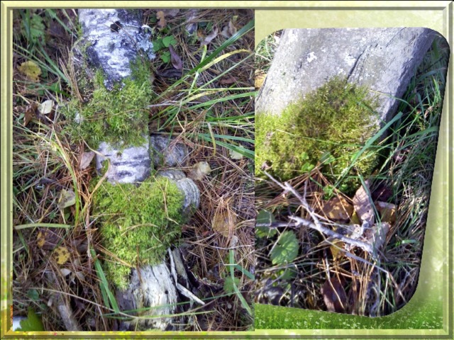 Найдите мох. Рассмотрите его строение. Есть ли у мха корни? Стебель? Листья? В какой местности обильнее всего растет мох?
