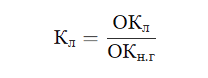 Коэффициент выбытия (Кл) Формула: Кл = ОКл / ОКн.г Расчет: Кл = 3 / 50 = 0,06 или 6,0%