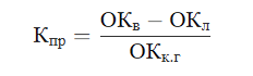 Коэффициент прироста (Кпр) Формула: Кпр = (ОКв - ОКл) / ОКк.г Расчет: Кпр = (8 - 3) / 55 ≈ 0,091 или 9,1%