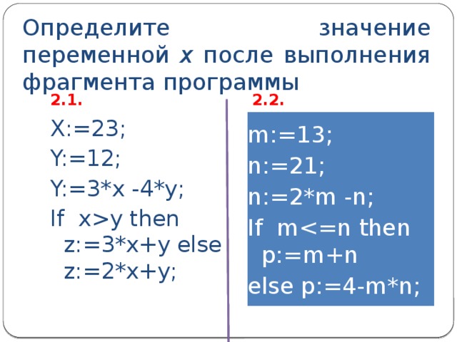 Определите значение переменной х после выполнения фрагмента программы