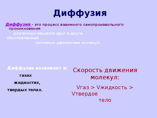 Диффузия – это процесс взаимного c амопроизвольного проникновения