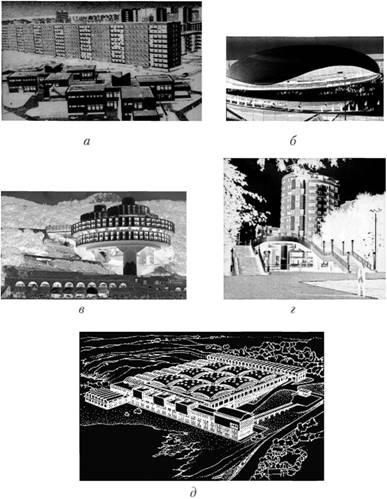 По назначению здания разделяются на четыре типа: жилые, общественные, промышленные и сельскохозяйственные. Жилые и общественные часто называются общим термином гражданские здания. Перечисленные виды зданий имеют свои характерные признаки, выраженные в архитектурно-планировочной структуре, и существенные отличия в своем архитектурном облике (рис.1).