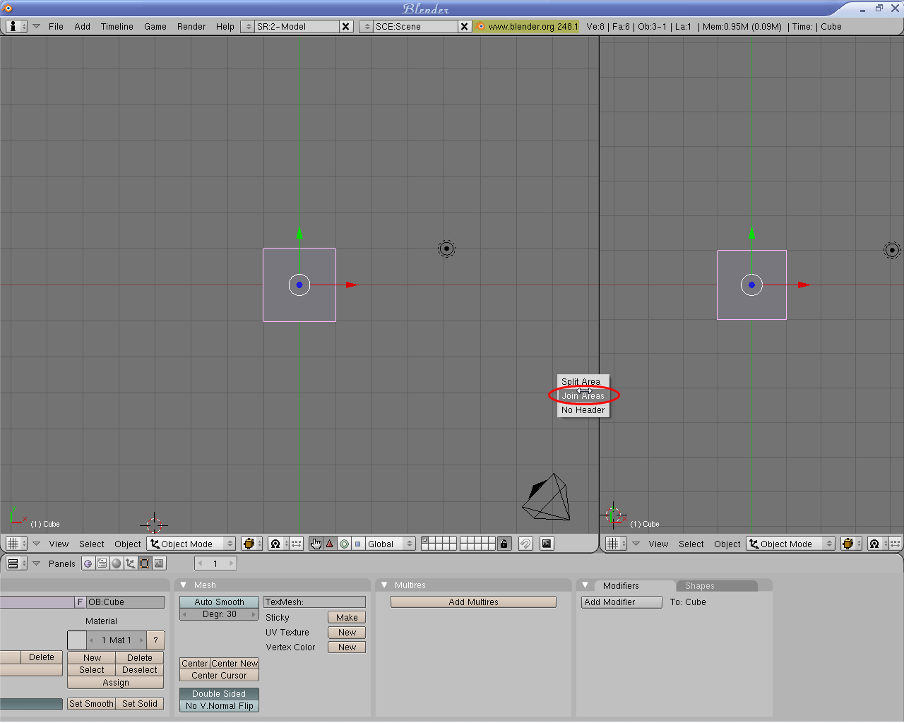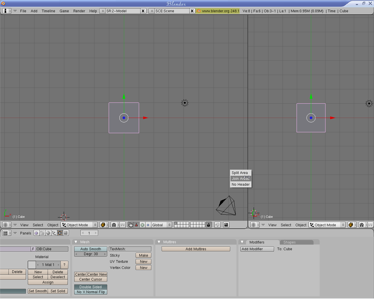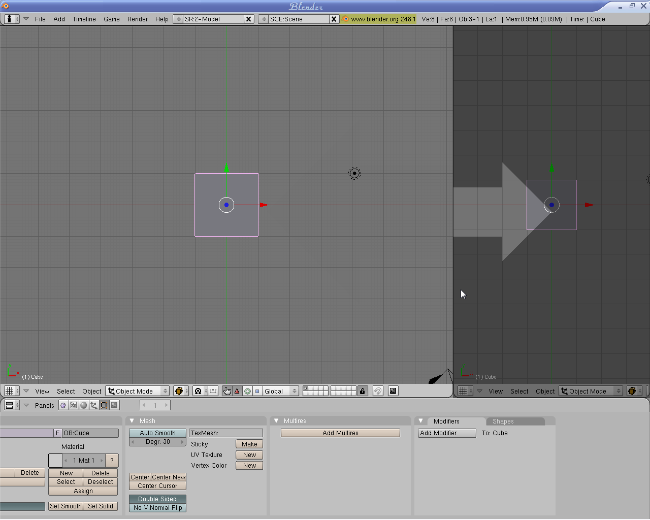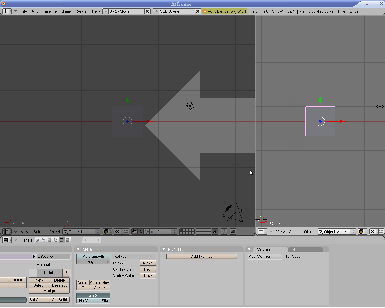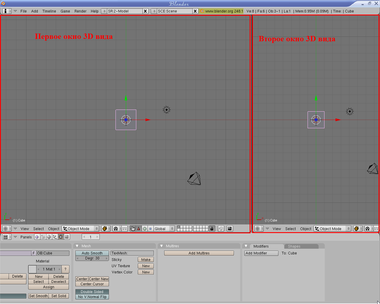 В некоторых случаях для работы необходимо более одного окна 3D вида, чтобы правильно расположить объект в трех пространствах.
