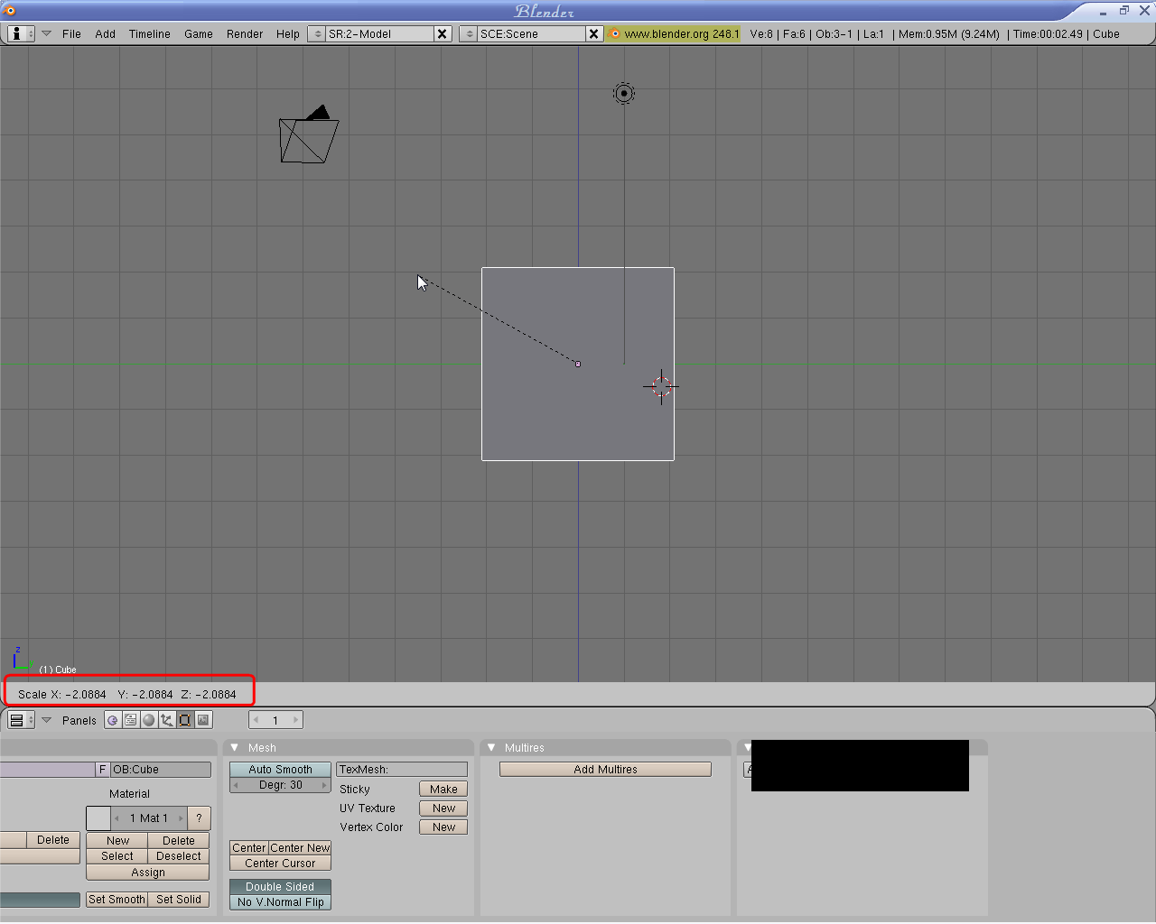5. Перемещать курсор мыши, пока объект не достигнет необходимого размера (размер можно увидеть в нижнем левом углу 3D окна);