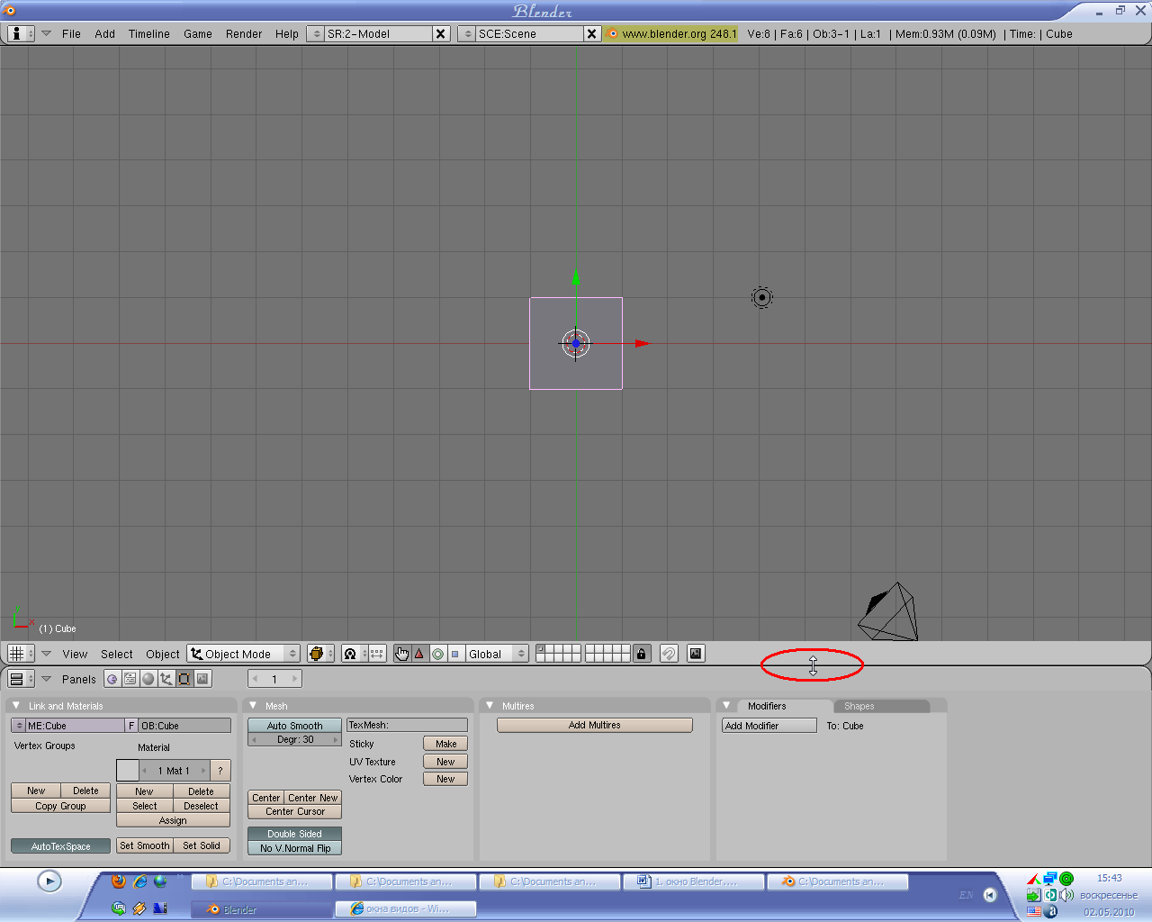 1. Выделить куб, если он не выделен (щелчок правой кнопкой мыши);