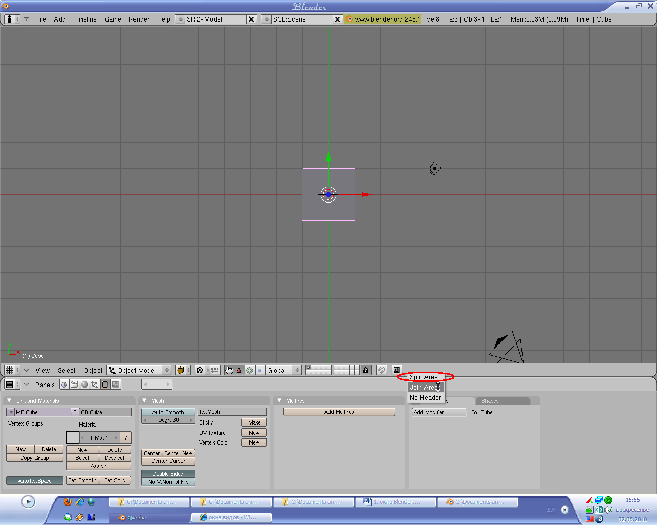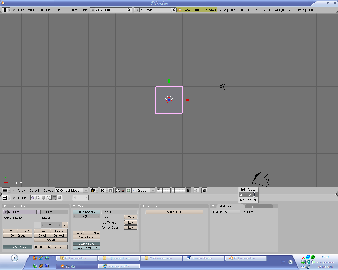 Задание 1. Познакомиться с окнами Blender 1. Запустить программу Blender с рабочего стола.