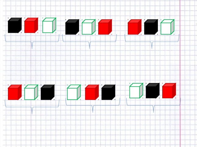 7. В коробке имеется 3 кубика: чёрный, красный и белый. Вытаскивая кубики наугад, мы ставим их последовательно друг за другом. Какова вероятность того, что в результате получится последовательность: красный, чёрный, белый?