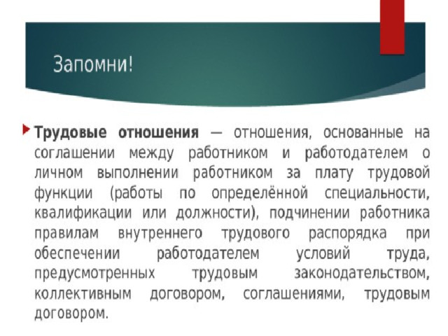 - Отрасль российского права, регулирующая трудовые отношения работников с работодателем, возникшие на основе трудового договора, а также тесно связанные с ними другие отношения в сфере применения труда работников
