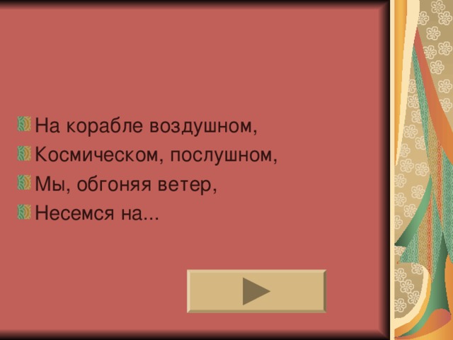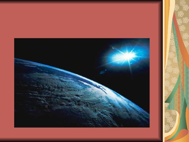 С тех пор прошло несколько тысяч лет. На нашей Земле выросло много поколений добрых и умных людей. Они построили корабли и, совершив кругосветные путешествия, узнали, что Земля- шар. А астрономы доказали, что Земля летит в космосе, вращаясь вокруг солнца, делая один оборот за год.