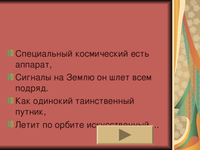 Цель: расширить знания учащихся об этапах освоения космоса.