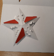 етвертым этапом, вырезанные красные полигоны приклеиваем на основание звезды.