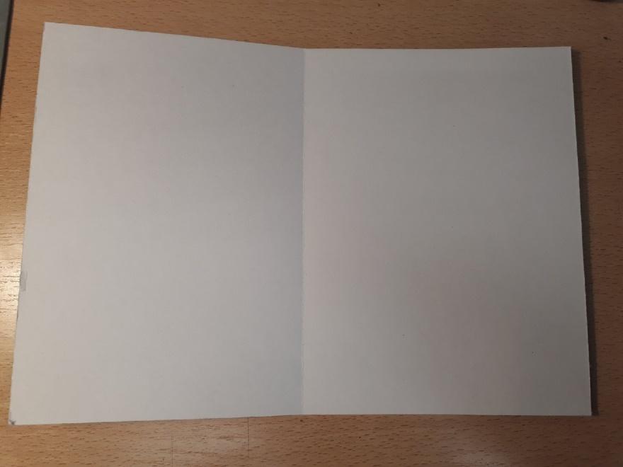 ервым этапом мы берем плотным белый лист, который и послужит основой для нашей открытки, складываем картон пополам так, чтобы нижняя половинка картона была на 1 см больше снизу, чем верхняя.