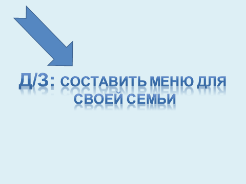 - Одному мудрецу задали вопрос : « Что для человека важнее, богатство или слава?» Он ответил : « Ни то , ни другое, а здоровье . Здоровый нищий счастливее больного короля» . - Прислушайтесь к словам мудреца и твердо запомните, что надежнее всех о своем здоровье можем позаботиться только мы с вами. 8) Рефлексия. -Ребята, сейчас, я предлагаю каждому оценить свою работу, используя данные предметы. 9) Д/з, оценки за урок. -Ребята , а сейчас запишите домашнее задание. Оно будет творческим. -Составить меню для своей семьи на каждый день.