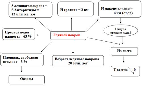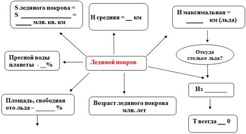 2. Мощный _________________ покров, занимающий практически весь материк, вследствие чего происходит интенсивное охлаждение, ______% солнечной радиации отражается от ледяной поверхности;