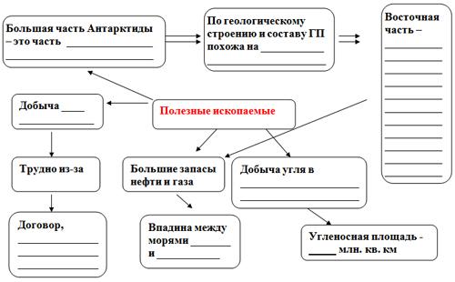Я приглашаю вас в экспедицию, чтобы разобраться во всем на месте. Итак, отправляемся в Антарктиду. Настоящие путешественники всегда записывают свои наблюдения в экспедиционный дневник, который станет итогом нашей работы на уроке. Мы должны будем получить опорный конспект материка, состоящий из блоков, выполненных каждой группой учеников, по которым можно “прочитать” все особенности природы Антарктиды. Не забывайте про аккуратность ваших рисунков, схем и надписей.