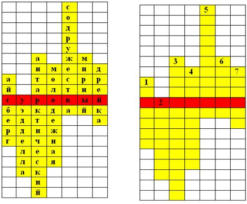Е. Группы решают совместно кроссворд (ФГП), определяя зашифрованное слово.