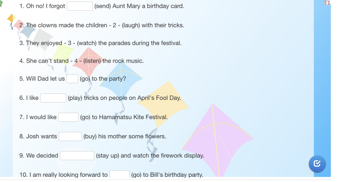 3. The boy felt his mother (touch) his cheek but he pretended (be sleeping).