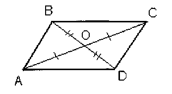 | Дано: ABCD - четырехугольник, AC и BD пересекаются в 0, AO=OC, BO=OD. Доказать: ABCD-параллелограмм