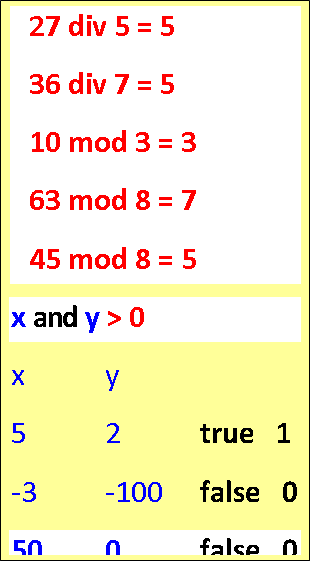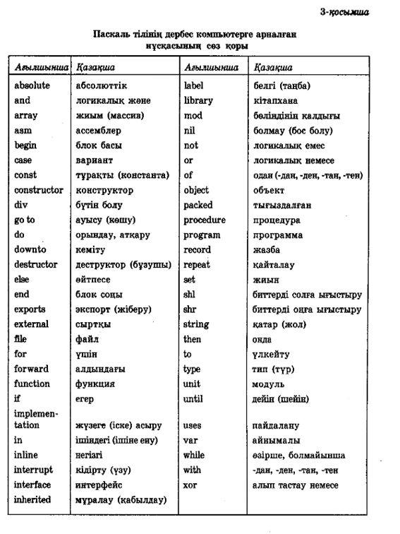 Бұларды біз математикадан білеміз. Паскалда бұлардан басқа мынадай да амалдар қолданылады: