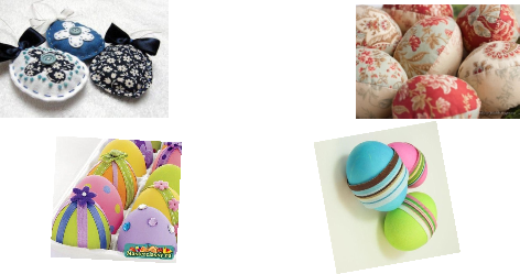 Из лоскутов ткани тоже можно сшить пасхальное яйцо. Сшить «мешочек» в виде яйца и набить его синтепоном или ватой. Украсить тесьмой, лентами, аппликацией, пуговицами, стразами, бусинами.
