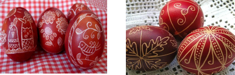 Драпанки - то есть процарапанное крашеное яйцо можно изготовить только из яиц с прочной коричневой скорлупой. Рисунок процарапывается острым предметом (иглой, шилом) по однотонной краске.