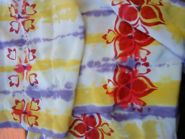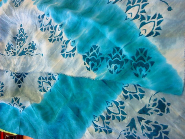 Для нанесения рисунка на ткань используют акриловые краски или анилиновый загуститель. Работают кистями с жесткой щетиной или поролоновыми губками.