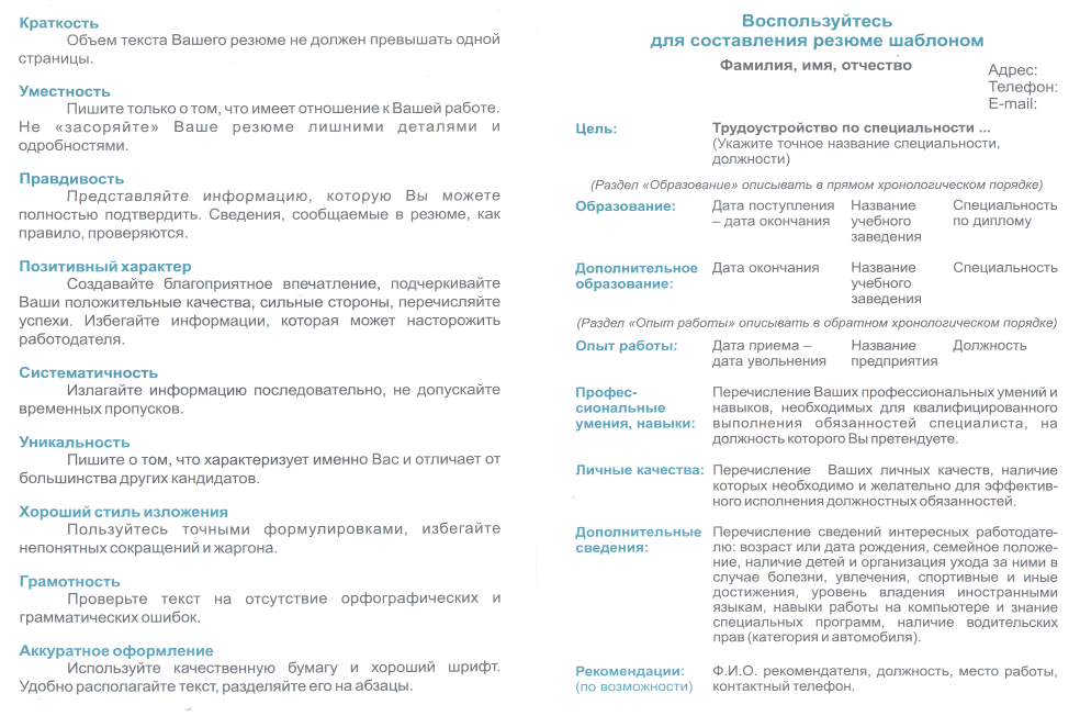 Умение грамотно составить резюме, правильно расставить акценты при собеседовании, заполнить анкету
