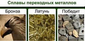 Большое использование сплавов переходных металлов: сталь, чугун, бронза, латунь, победит. Рис. 1. При исследовании сплавов прослеживается уникальное значение железа для человека. Сплавы даже разделяют на черные и цветные по содержанию в них железа.