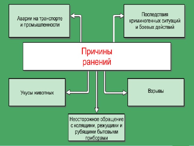 Огнестрельные раны- среди которых особенно опасны ранения внутренних органов, головы, кровеносных сосудов.