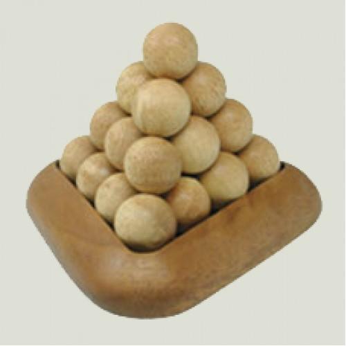 Э: Следующее испытание на смекалку. Посмотрите на пирамиду и запомните, как она выглядит. (Ждет некоторое время) Теперь все глаза закрываем. (Быстро разбирает головоломку). Теперь открываем и пытаемся собрать пирамидку заново.
