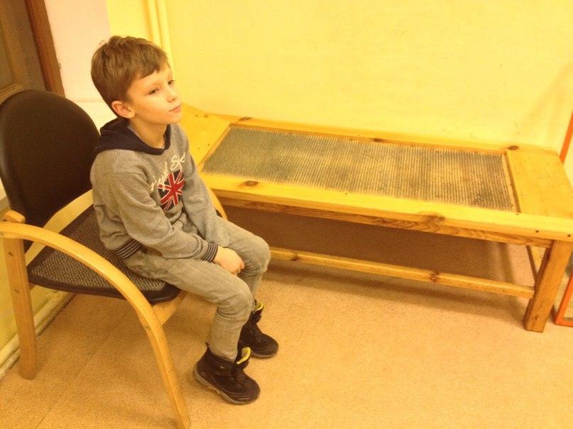 Э: Ну а следующее испытание снова на смелость. Сейчас вам придется присесть, прилечь и встать на настоящие гвозди. Вы сможете почувствовать себя настоящими йогами! Кто хочет попробовать? (выбирает трех участников и они садятся, ложатся и встают босыми ногами на гвозди) Ну как ощущения? Вам больно? (дети отрицательно качают головой). Обратите внимание, что каждый гвоздь по отдельности очень острый, но за счет того, что их очень много, ваша масса равномерно распределяется по поверхности гвоздей, и вы боли не ощущаете. Самое главное аккуратно садиться и ложиться, иначе можно повредить свою одежду.